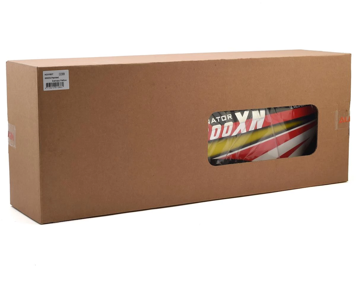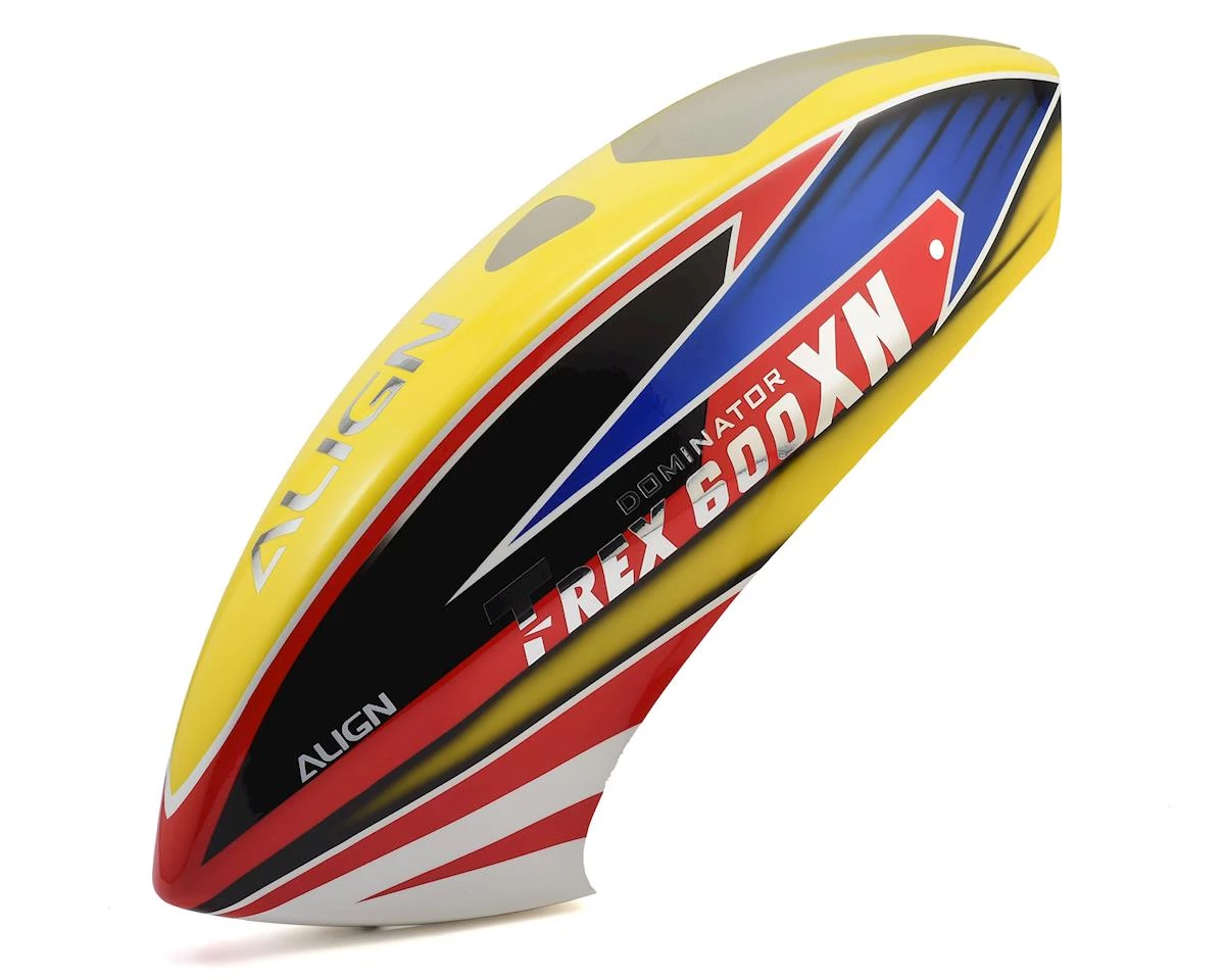 This is a replacement Align 600XN Painted Canopy with a Yellow, Red, & Blue livery.