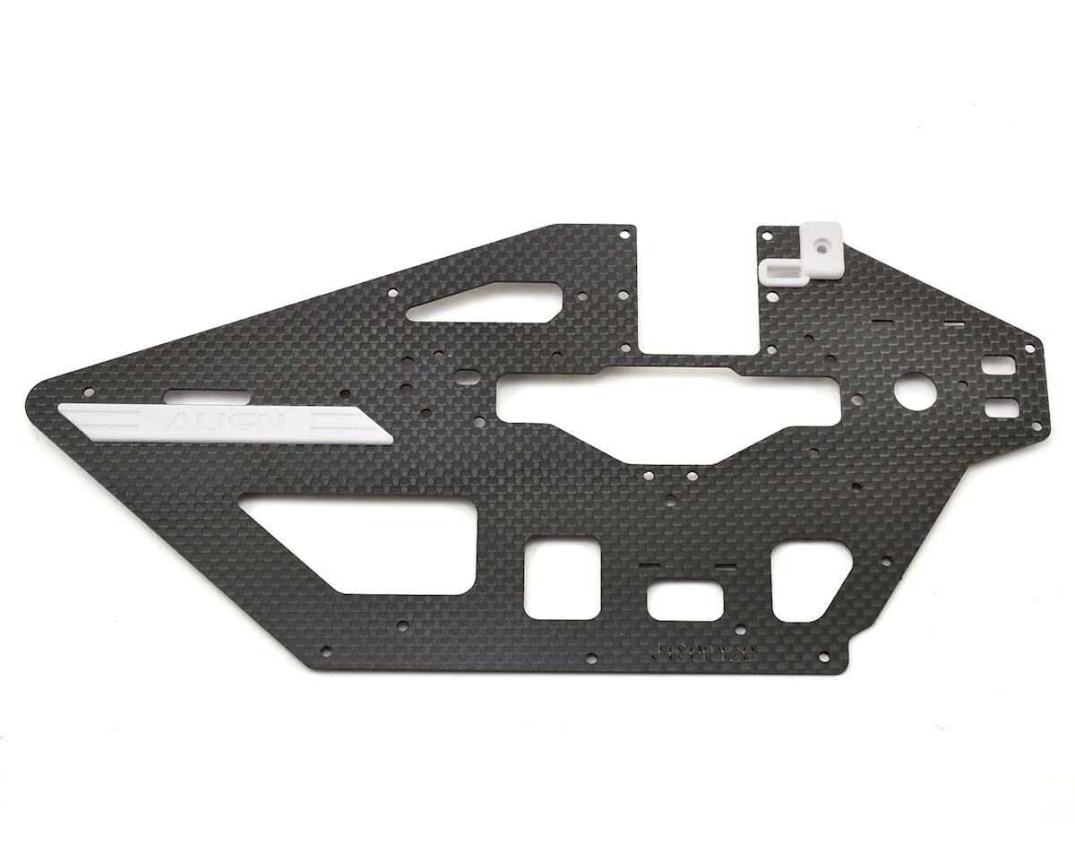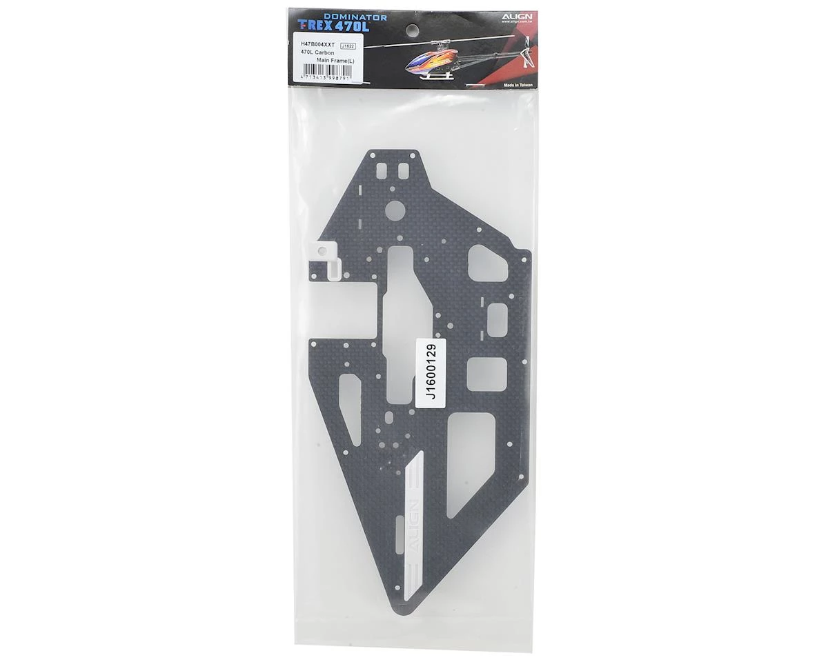 A replacement Left Carbon Fiber Main Frame from Align, suited for use with the T-Rex 470L Dominator helicopter.Â