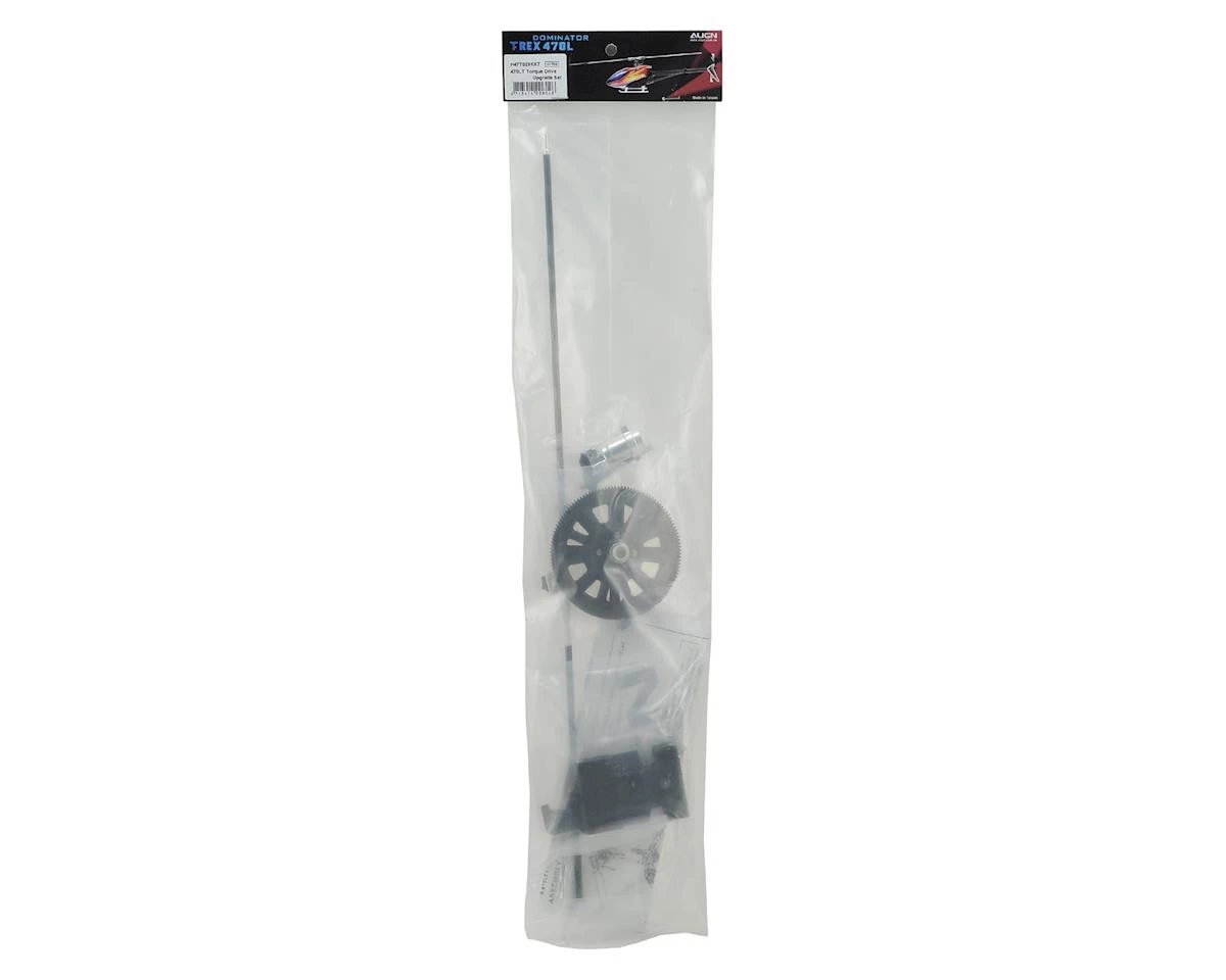 The Align T-Rex 470L Torque Tube Drive Upgrade Set includes all items needed to convert a standard belt version of the 470L to accept a Torque Tube Drive system. Pilots looking for maximum performance, increased efficiency, and lower drag will benefit with installing a Torque Tube System over keeping their Belt Tail System.Â